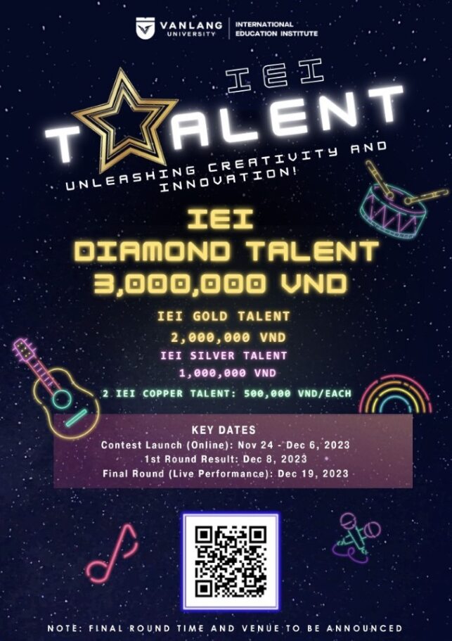 Có những tài năng cần được lên tiếng! Mùa lễ hội này, IEI chờ đón bạn “trình diễn” tài năng đặc biệt của mình, hãy nhanh tay submit form tham dự trước 6/12/2023 nhé!