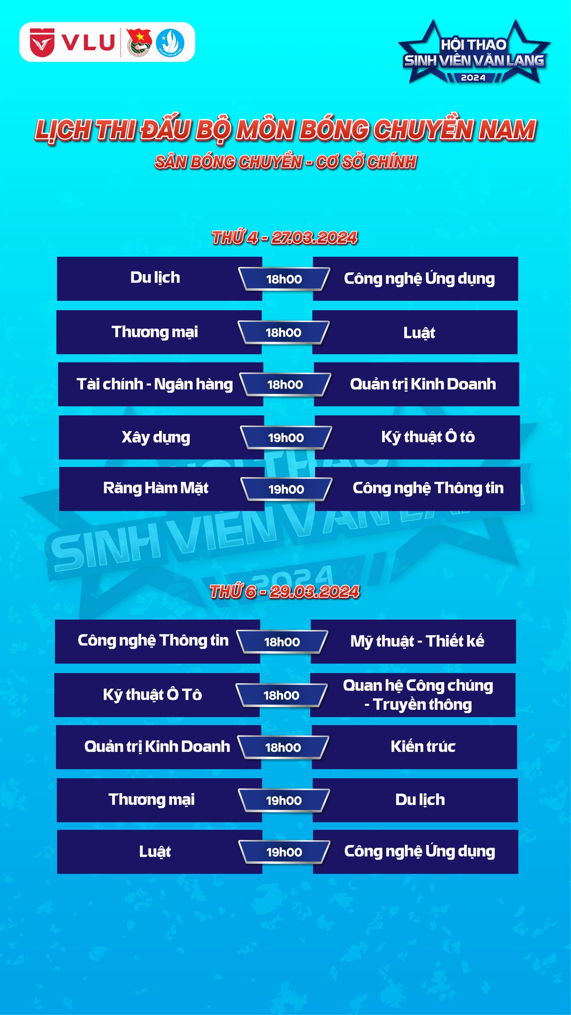 HỘI THAO SINH VIÊN VĂN LANG 2024 - BÓNG CHUYỀN NAM - NGÀY 27.03.2024