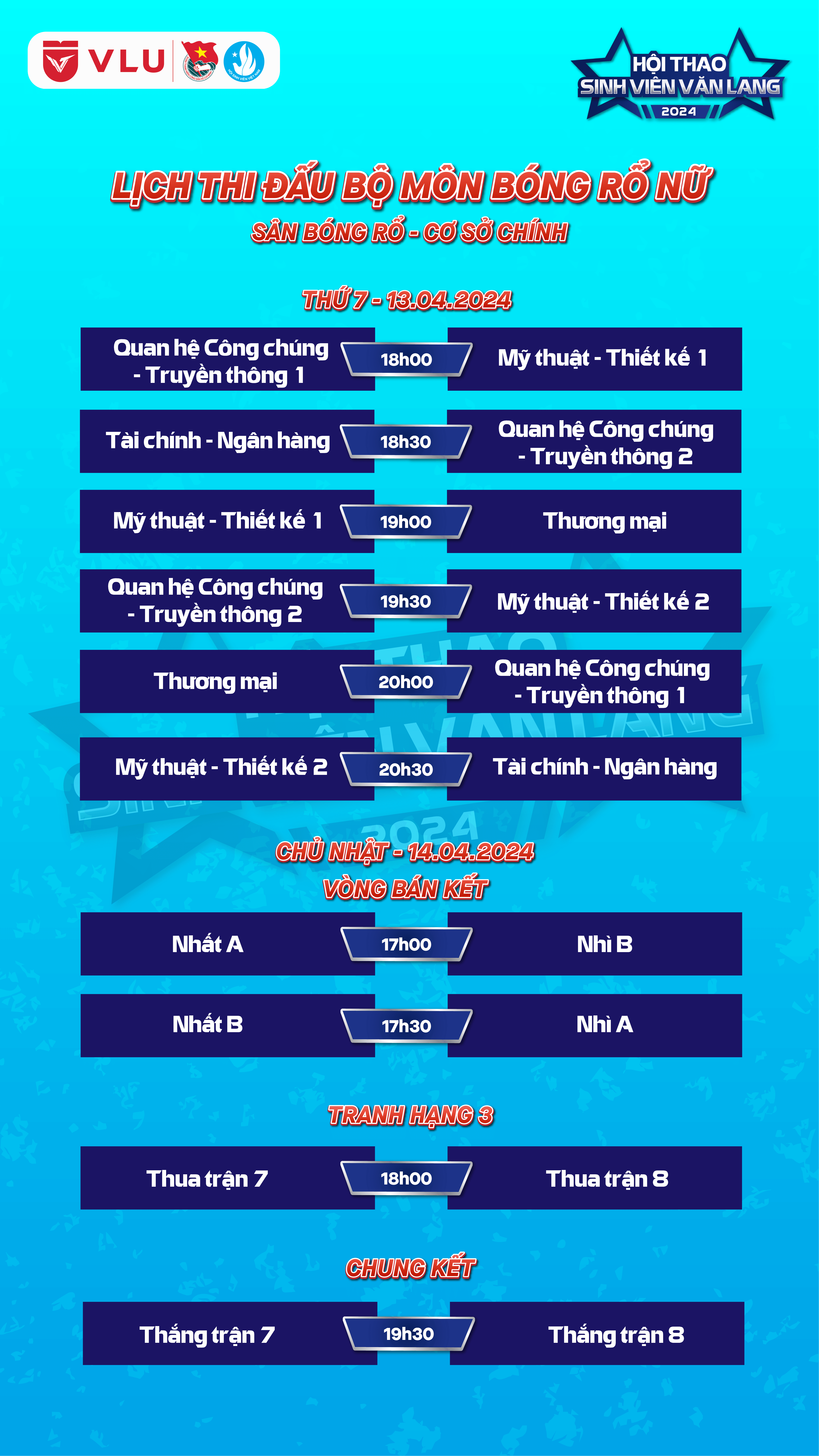 LỊCH THI ĐẤU BỘ MÔN BÓNG RỔ