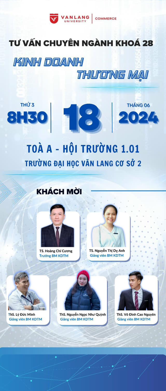 Theo CTĐT hiện hành của ngành Kinh doanh thương mại K28, các em sẽ phải lựa chọn một trong hai chuyên ngành trước thời điểm đăng ký kế hoạch học tập cho HK 1 năm học 2024 – 2025. Do đó, Bộ môn KDTM tổ chức buổi gặp mặt để tư vấn chọn ngành cho các em. Thân mời các em tham dự sự kiện này.
