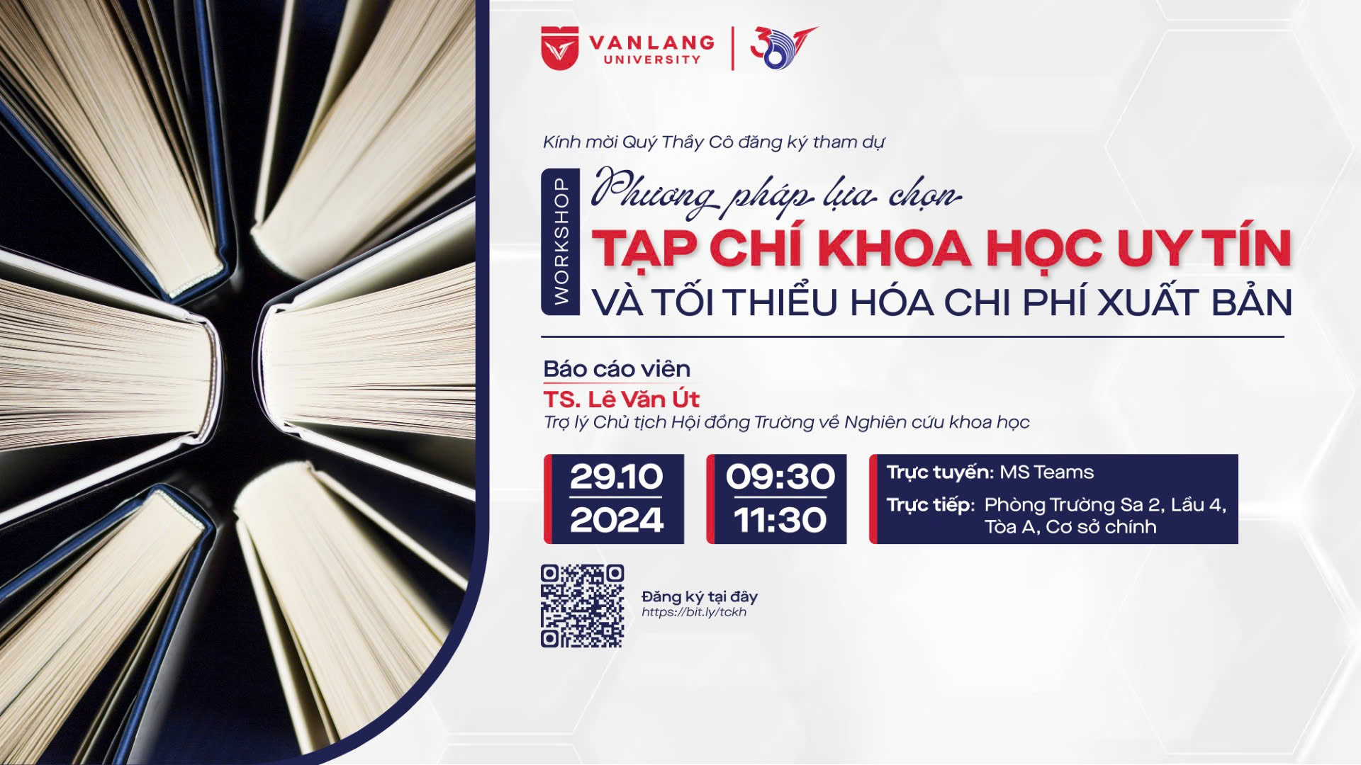 Trung tâm Đào tạo và Phát triển xin trân trọng kính mời Quý Thầy/Cô đăng ký tham gia workshop với nội dung xoay quanh các giải pháp để chọn lựa tạp chí khoa học uy tín và phương thức tối ưu hóa chi phí xuất bản bài báo. Đến với chương trình, Thầy/Cô sẽ được Diễn giả chia sẻ và cùng thảo luận các vấn đề sau: