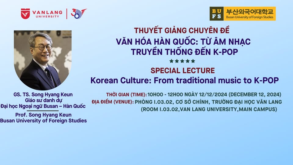 Bài giảng đặc biệt về âm nhạc của Hàn Quốc từ âm nhạc truyền thống đến K-Pop, dành cho mọi đối tượng quan tâm.