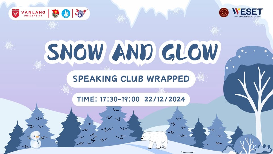 Nhằm tiếp nối chuỗi hoạt động đầy màu sắc và thú vị dành cho sinh viên Khoa Luật, WESET English Center phối hợp với Khoa Luật hân hạnh giới thiệu buổi Speaking Club với chủ đề “Snow and Glow”.