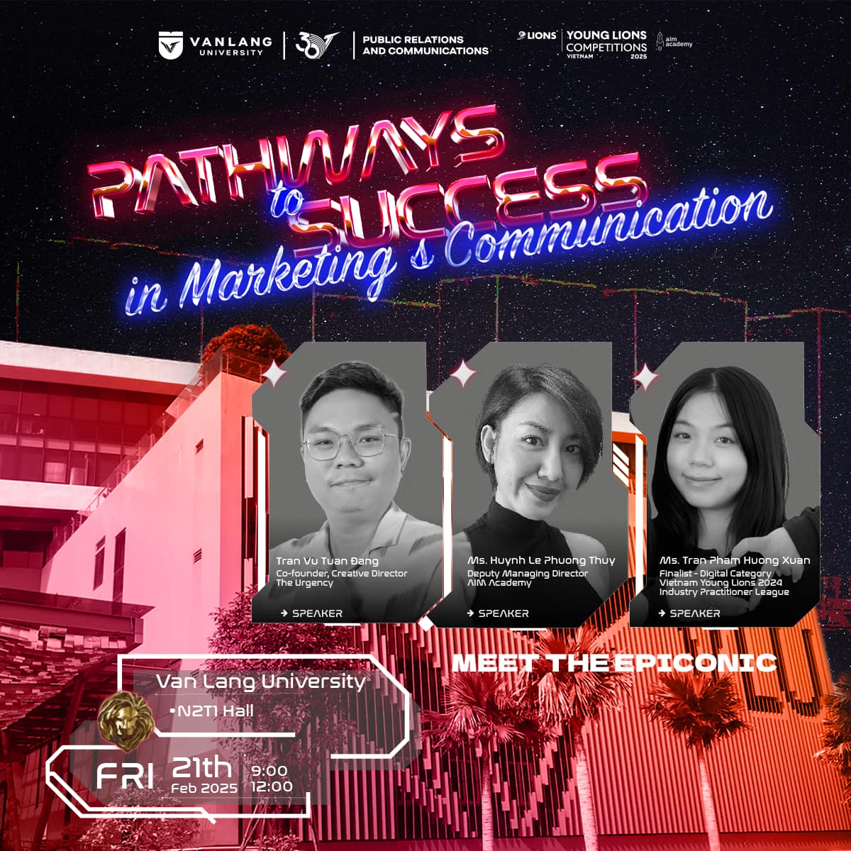 Unitour tại Đại học Văn Lang lần này sẽ mở ra những góc nhìn thực tế từ những chuyên gia và thí sinh đã trải qua những cuộc thi khốc liệt nhất trong ngành. Với chủ đề “Meet the Epiconic: Pathways to Success in Marketing & Communication”, sự kiện không chỉ giúp bạn hiểu rõ hơn về ngành, mà còn tiếp lửa để bạn bước ra khỏi vùng an toàn, sẵn sàng theo đuổi đam mê sáng tạo.