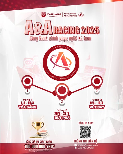 Hãy tham gia ngay A&A RACING 2025 – mùa thứ hai, do Khoa Kế toán – Kiểm toán, Trường Đại học Văn Lang tổ chức với chủ đề: