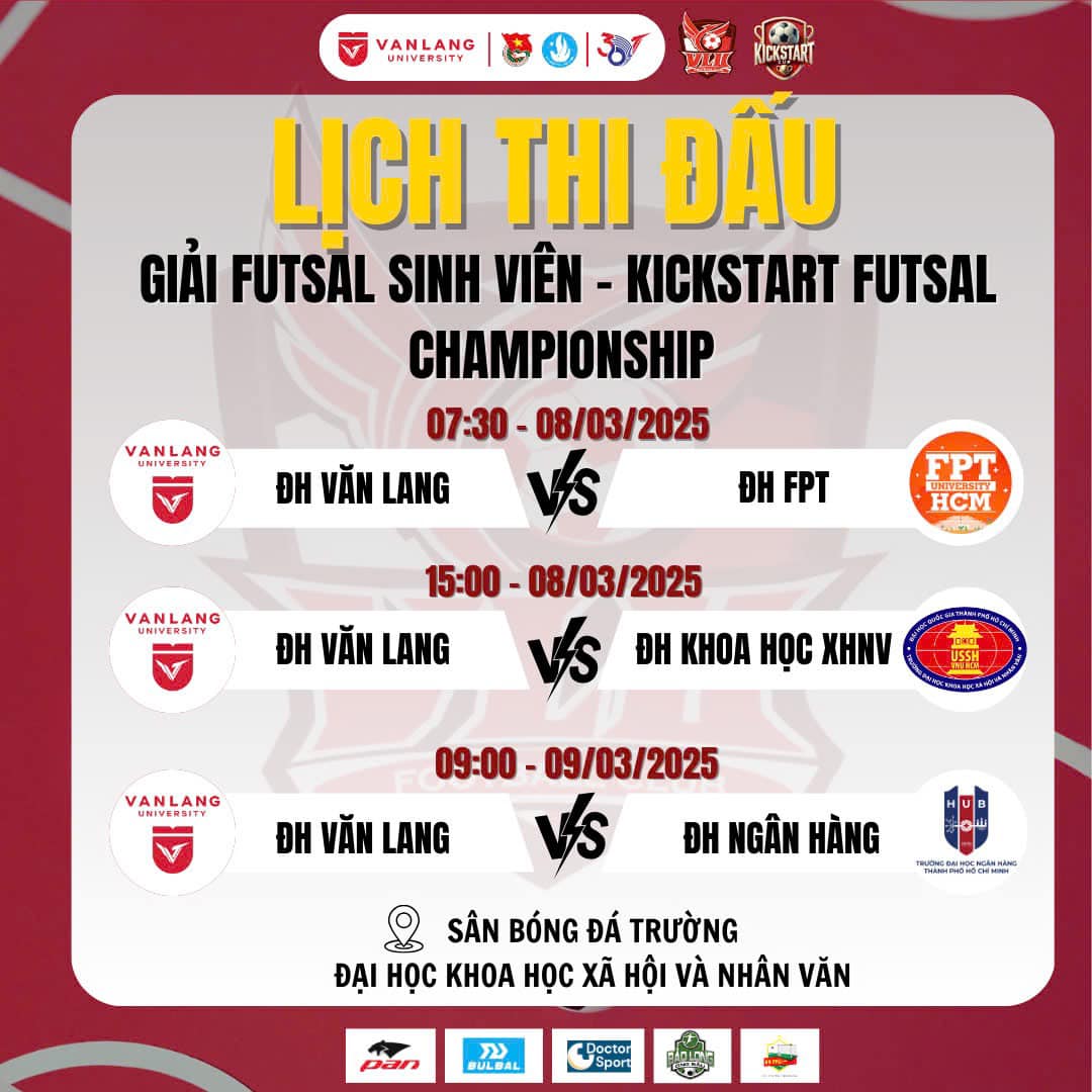 LỊCH THI ĐẤU GIẢI FUTSAL SINH VIÊN - KICKSTART FUTSAL CHAMPIONSHIP 2025