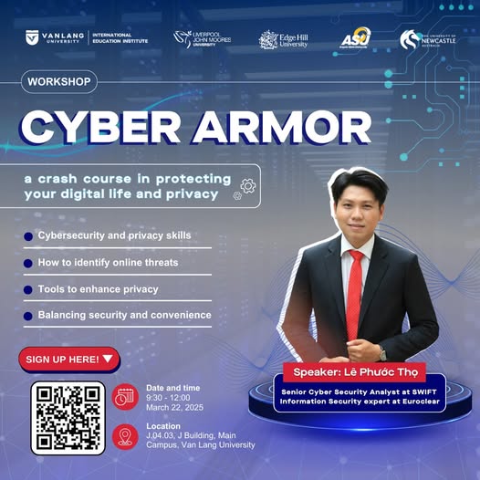 ️Đặc biệt, một diễn giả dày dặn kinh nghiệm sẽ chia sẻ trong Workshop với chủ đề Cyber Armor lần này, Anh Lê Phước Thọ, với bằng cấp thạc sĩ Hệ thống kinh doanh (Đức) và An ninh thông tin (Hà Lan). Cùng hơn 10 năm kinh nghiệm trong lĩnh vực an ninh mạng Châu Âu làm việc tại các đơn vị lớn và uy tín như SWIFT - Hiệp hội Viễn thông Tài chính Liên ngân hàng Toàn cầu và Euroclear - Đơn vị cung cấp dịch vụ Cơ sở hạ tầng thị trường tài chính (FMI) toàn cầu.