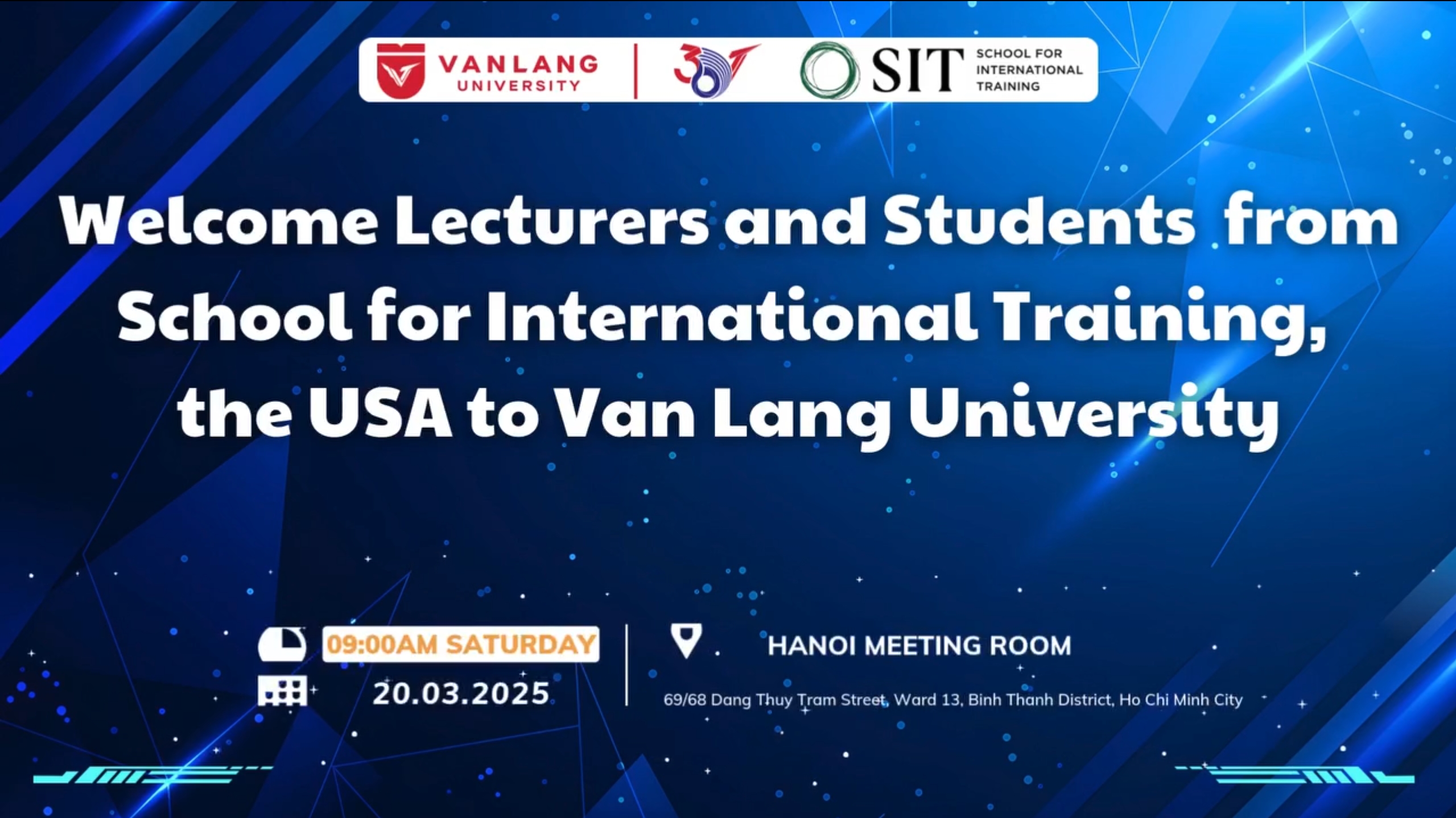 Ngày 20/03/2025 tới đây, Khoa Quản trị kinh doanh - Trường Đại học Văn Lang vui mừng chào đón đoàn gồm 18 sinh viên và 03 giảng viên từ School for International Training (SIT) (Hoa Kỳ) đến tham quan và học tập tại trường.