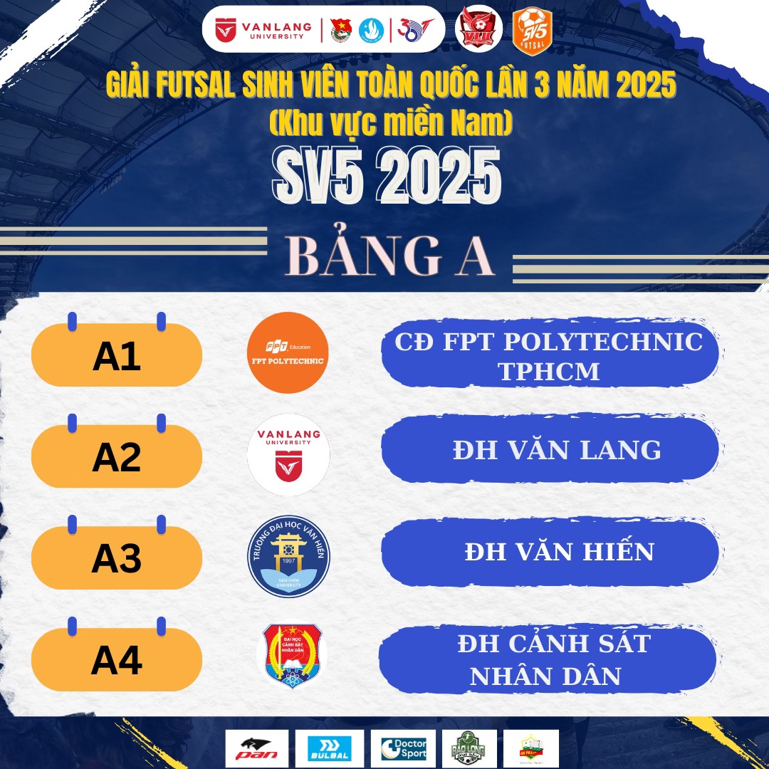 Đội tuyển Đại học Văn Lang đã sẵn sàng bước vào những trận đấu quan trọng tại Giải Futsal Sinh Viên Toàn Quốc Năm 2025 (Khu vực miền Nam). Hãy cùng tiếp lửa và cổ vũ hết mình để các chiến binh của chúng ta bùng nổ trên sân đấu nào!