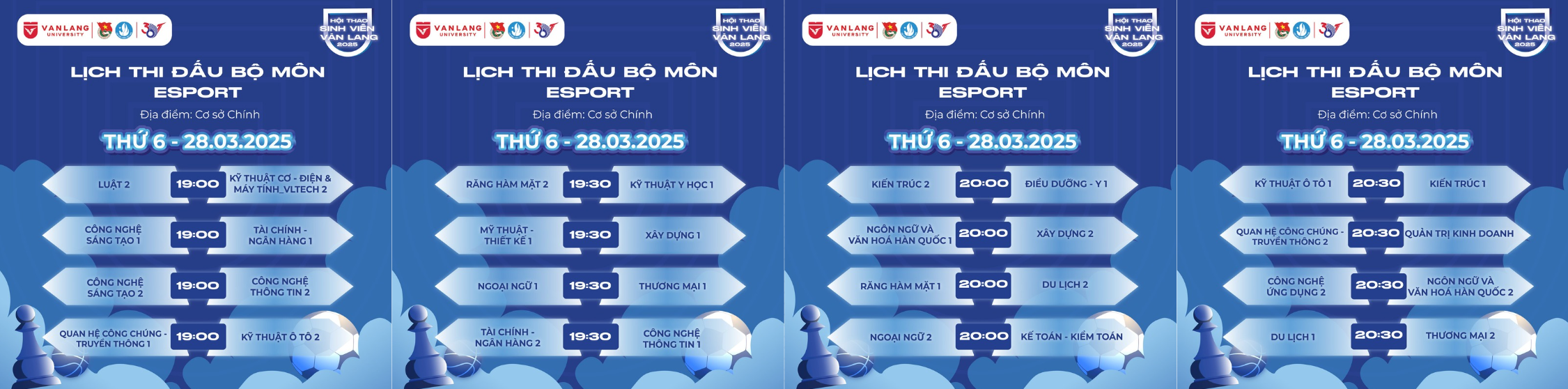 Ngọn lửa tại Hội thao Sinh viên Văn Lang 2025 vẫn đang hừng hực. Giờ đây, chúng ta hãy cùng chào đón sự trở lại mạnh mẽ của những trận chiến Esport đỉnh cao! Đây là nơi mỗi cú bấm chiêu, mỗi pha combat đều mang đến những cung bậc cảm xúc khó quên. Nơi những bộ óc chiến thuật, đôi tay nhanh nhạy và tinh thần đồng đội được thử thách qua từng ván đấu online nghẹt thở!