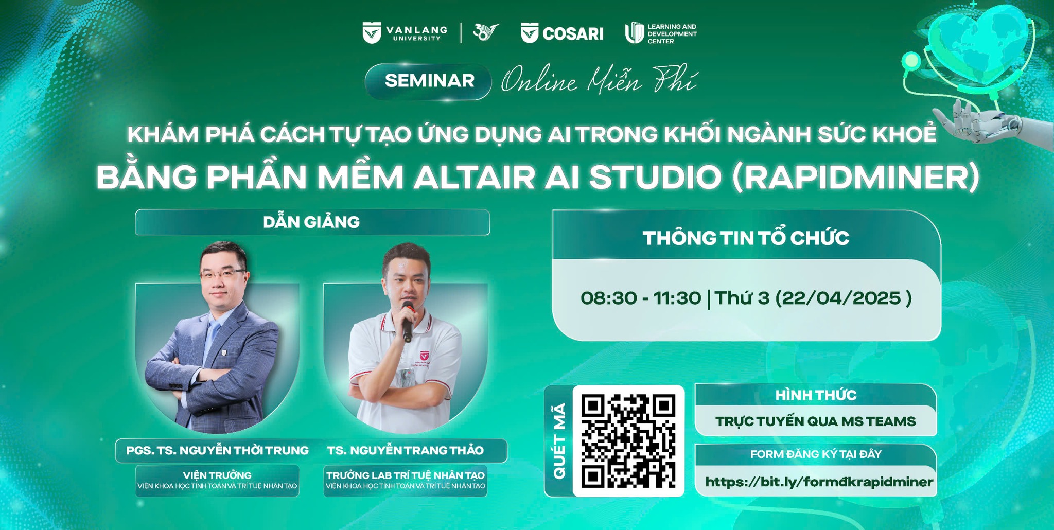 KHÁM PHÁ CÁCH TỰ TẠO ỨNG DỤNG AI TRONG KHỐI NGÀNH SỨC KHOẺ - BẰNG PHẦN MỀM ALTAIR AI STUDIO (RAPIDMINER)