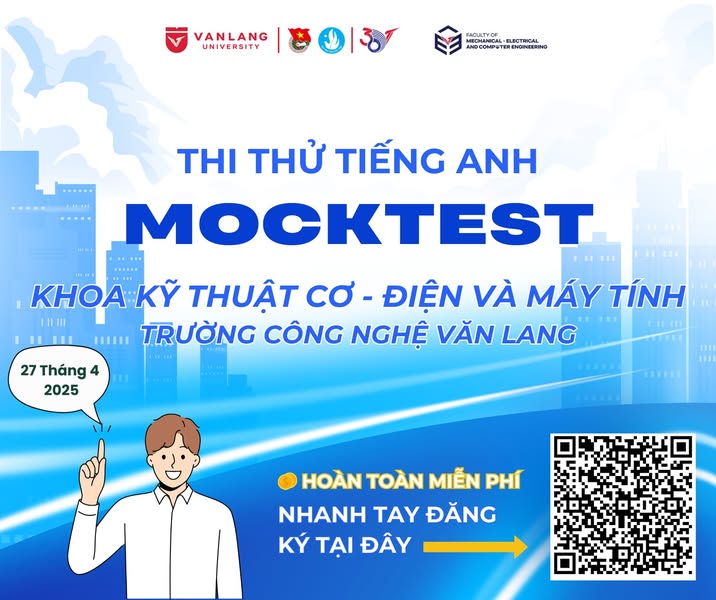 Bạn là sinh viên K27 - K30 thuộc khoa Kỹ thuật Cơ - Điện và Máy tính? Vậy thì đừng bỏ lỡ cơ hội tham gia ngay Mocktest VSTEP – chương trình thi thử được thiết kế sát với cấu trúc kỳ thi đánh giá năng lực tiếng Anh thực tế.