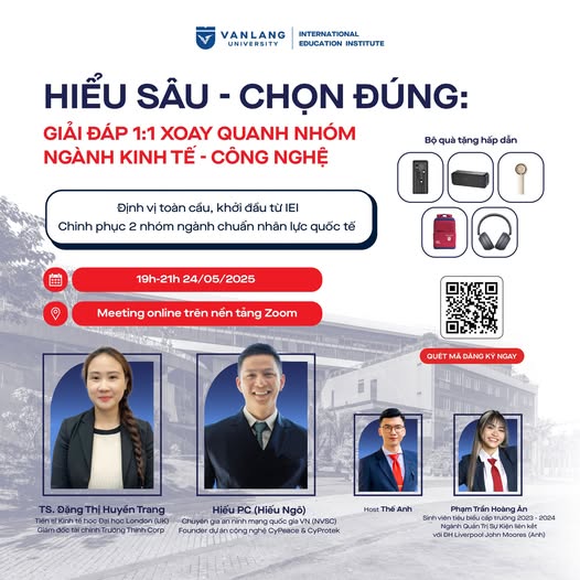 Với mong muốn được đồng hành cùng các bạn trong cột mốc đầy quan trọng sắp tới, Viện Đào tạo Quốc tế - Trường Đại học Văn Lang hân hạnh tổ chức buổi hội thảo trực tuyến “Hiểu sâu - Chọn đúng”, nhằm mang đến những chia sẻ thực tế về hai nhóm ngành đang chiếm sóng thị trường: Kinh tế và Công nghệ.