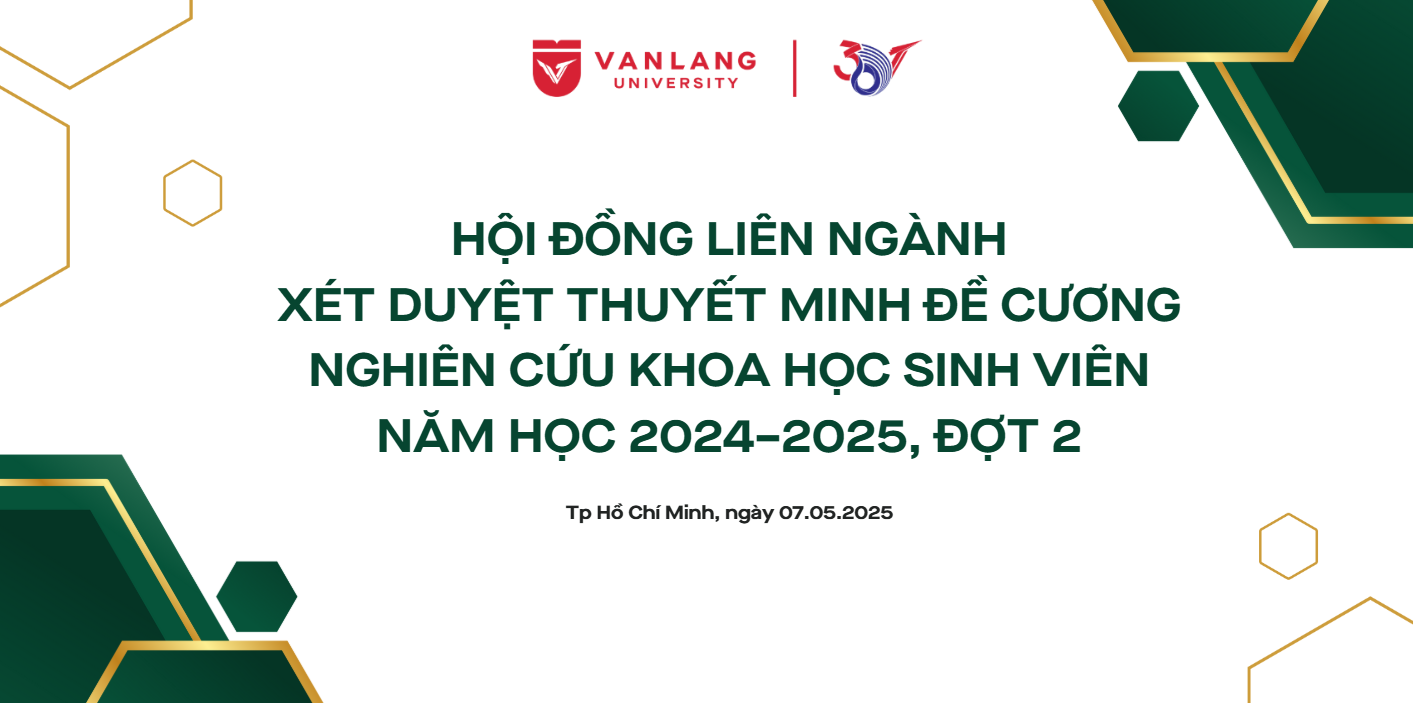 Phòng Phát triển Nghiên cứu Khoa học Trường Đại học Văn Lang đã tổ chức buổi xét duyệt liên ngành thuyết minh đề cương nghiên cứu khoa học sinh viên Đợt 2, năm học 2024-2025. Với các khối ngành Công nghệ - Kỹ thuật; Kiến trúc; Thiết kế - Nghệ thuật; Xã hội Nhân văn - Truyền thông; Du lịch; Kinh doanh - Quản lý đã mang đến Hội đồng 80 đề cương nghiên cứu khoa học sinh viên.