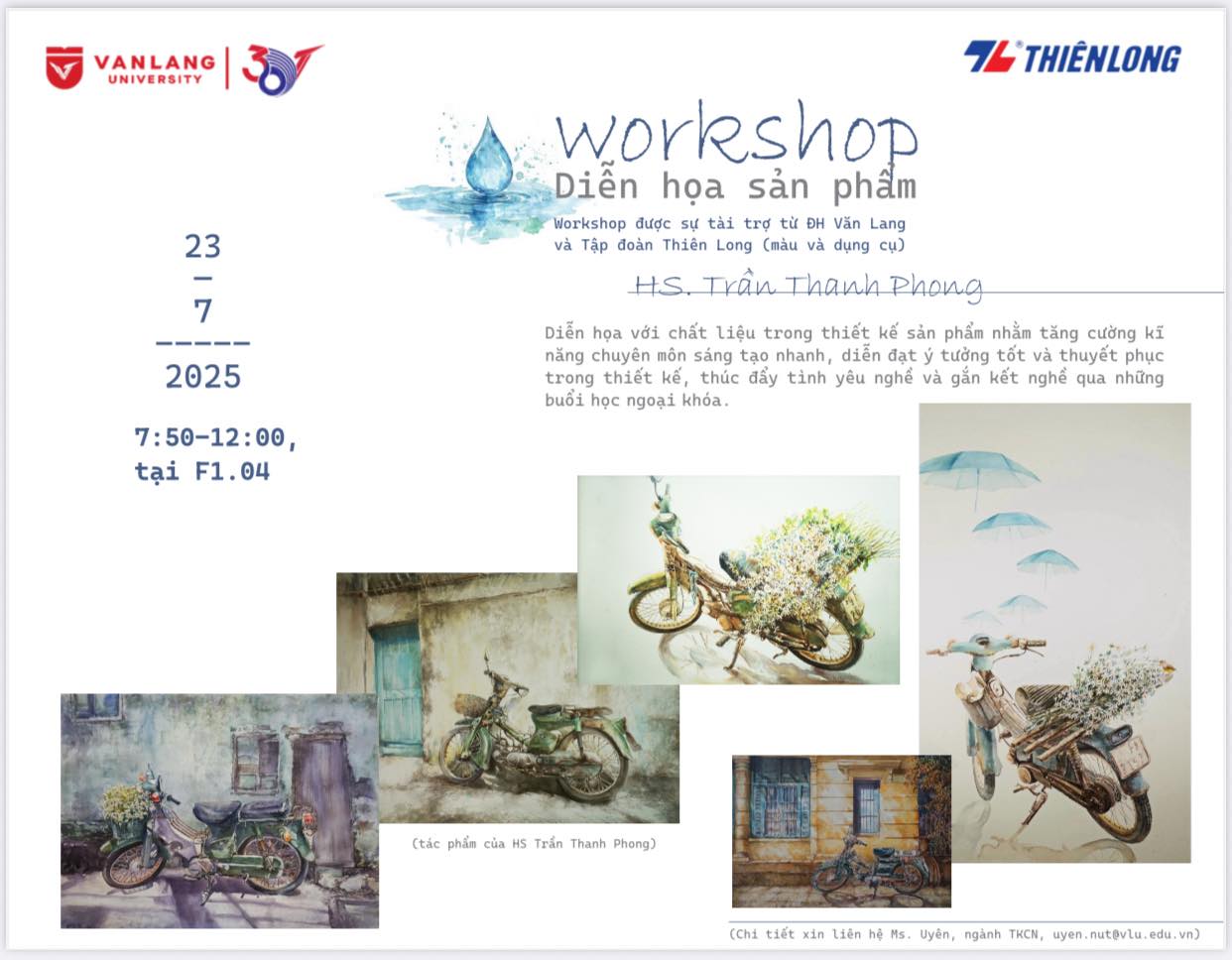 Workshop được sự tài trợ từ ĐH Văn Lang và Tập đoàn Thiên Long (màu và dụng cụ)