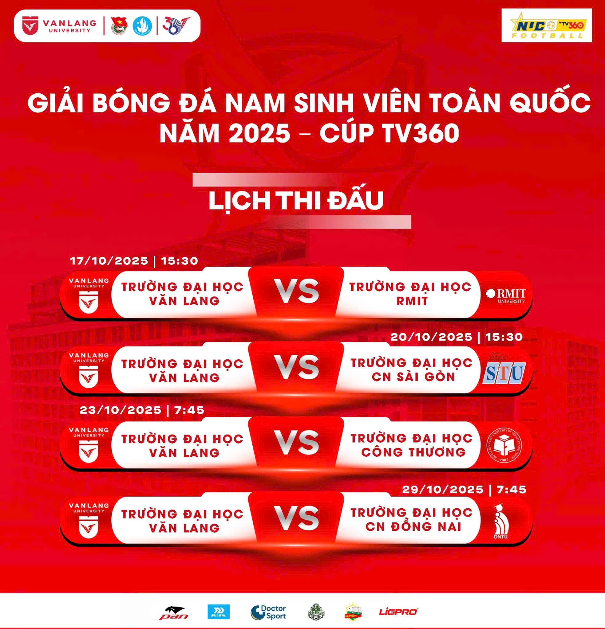 LỊCH THI ĐẤU GIẢI BÓNG ĐÁ NAM SINH VIÊN TOÀN QUỐC 2025 – CÚP TV360