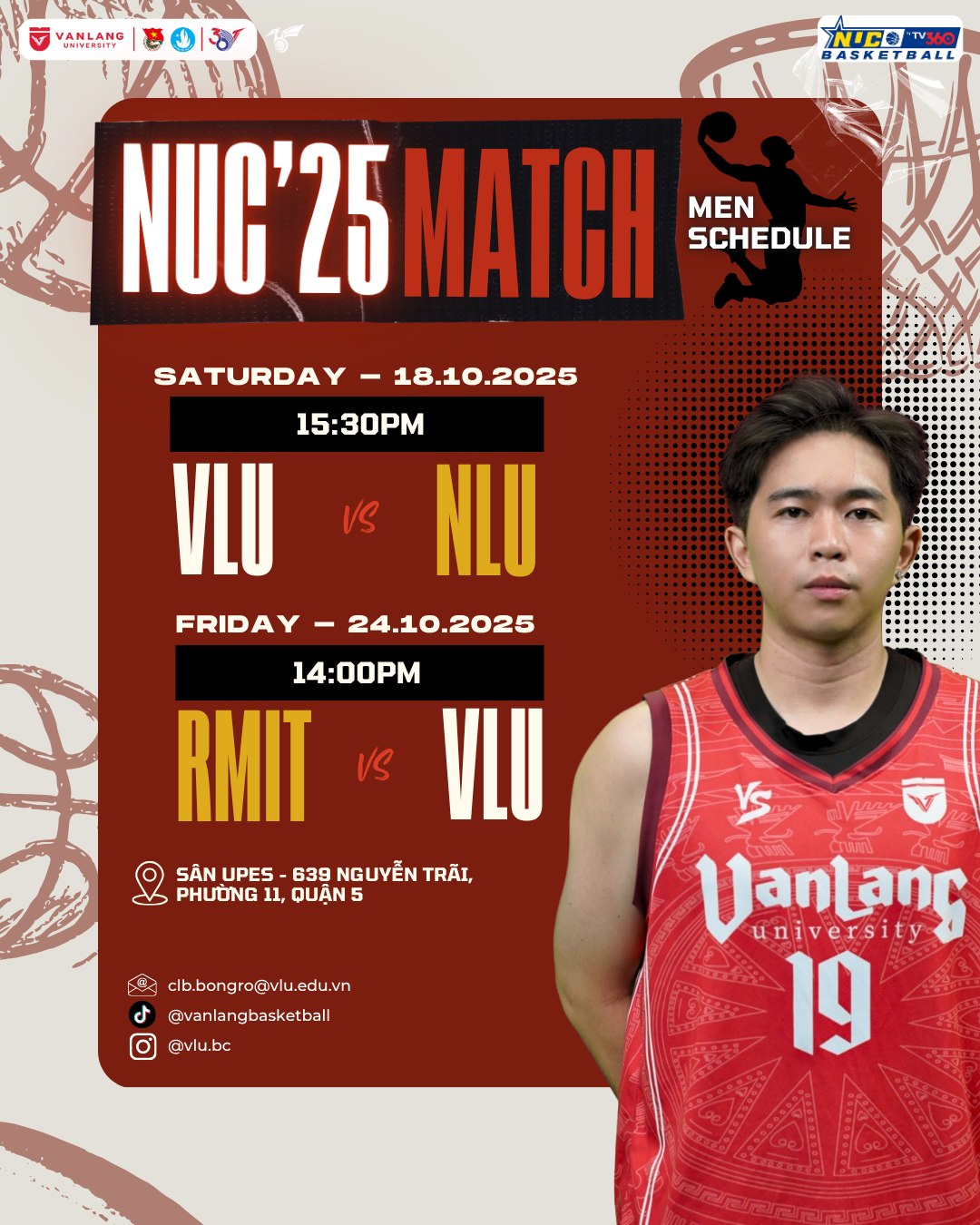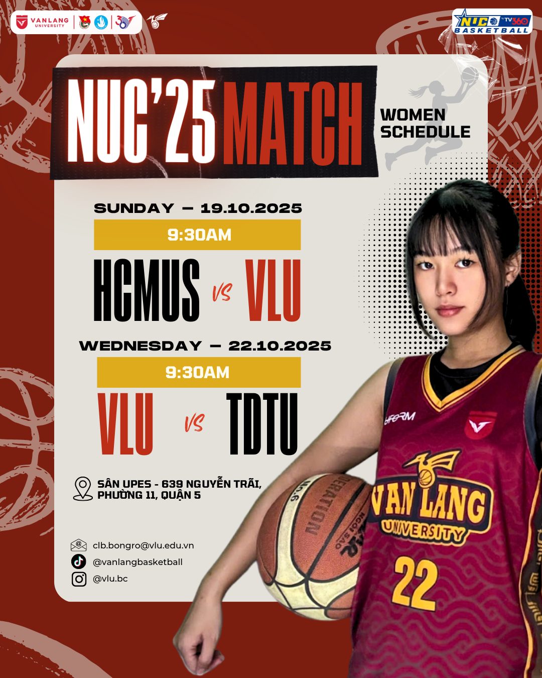 Tuần này, đội Nam và Nữ của Văn Lang Basketball Club chính thức ra sân trong Vòng loại khu vực Miền Nam - Giải Bóng rổ Sinh viên Toàn quốc NUC 2025!
