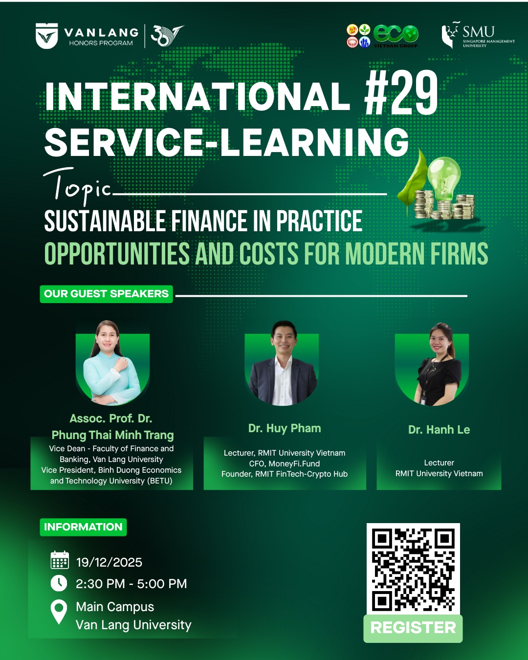 INTERNATIONAL SERVICE-LEARNING #29: CHỦ ĐỀ SUSTAINABLE FINANCE IN PRACTICE: OPPORTUNITIES AND COSTS FOR MODERN FIRMS