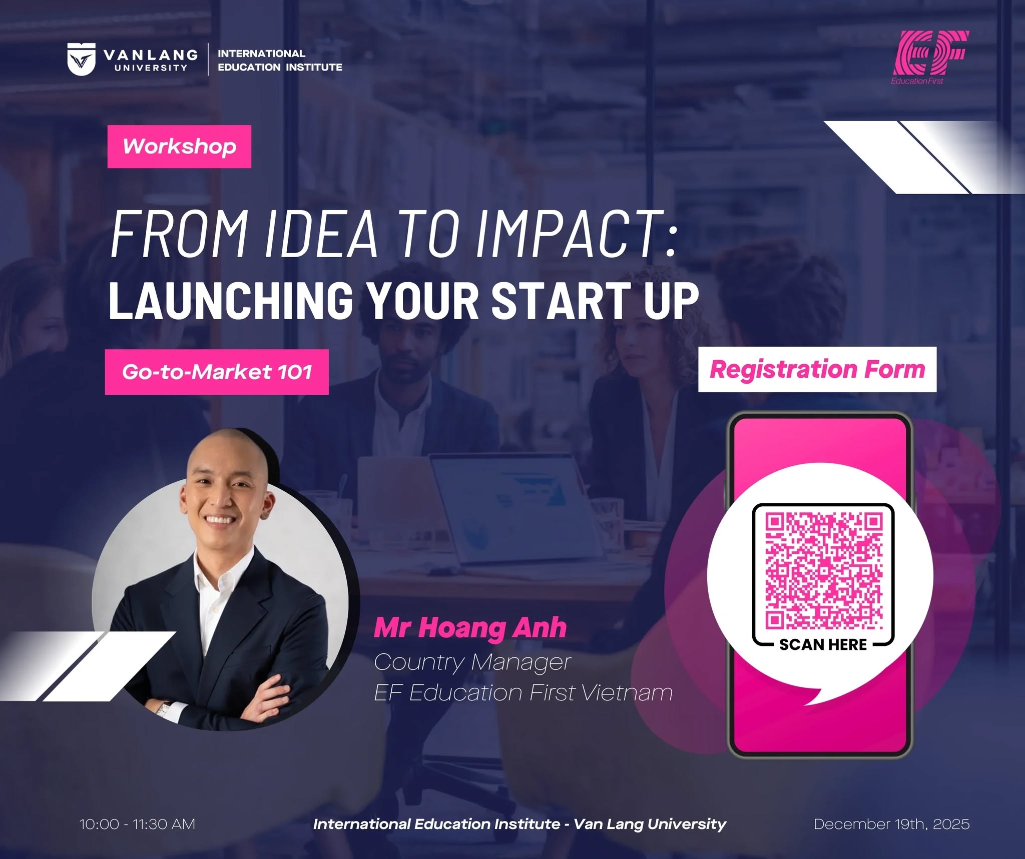 Workshop “From Idea to Impact: Launching Your Startup – Go-to-Market 101” sẽ mang đến cho bạn cái nhìn rõ ràng về cách đưa dự án của mình tiếp cận thị trường một cách hiệu quả.