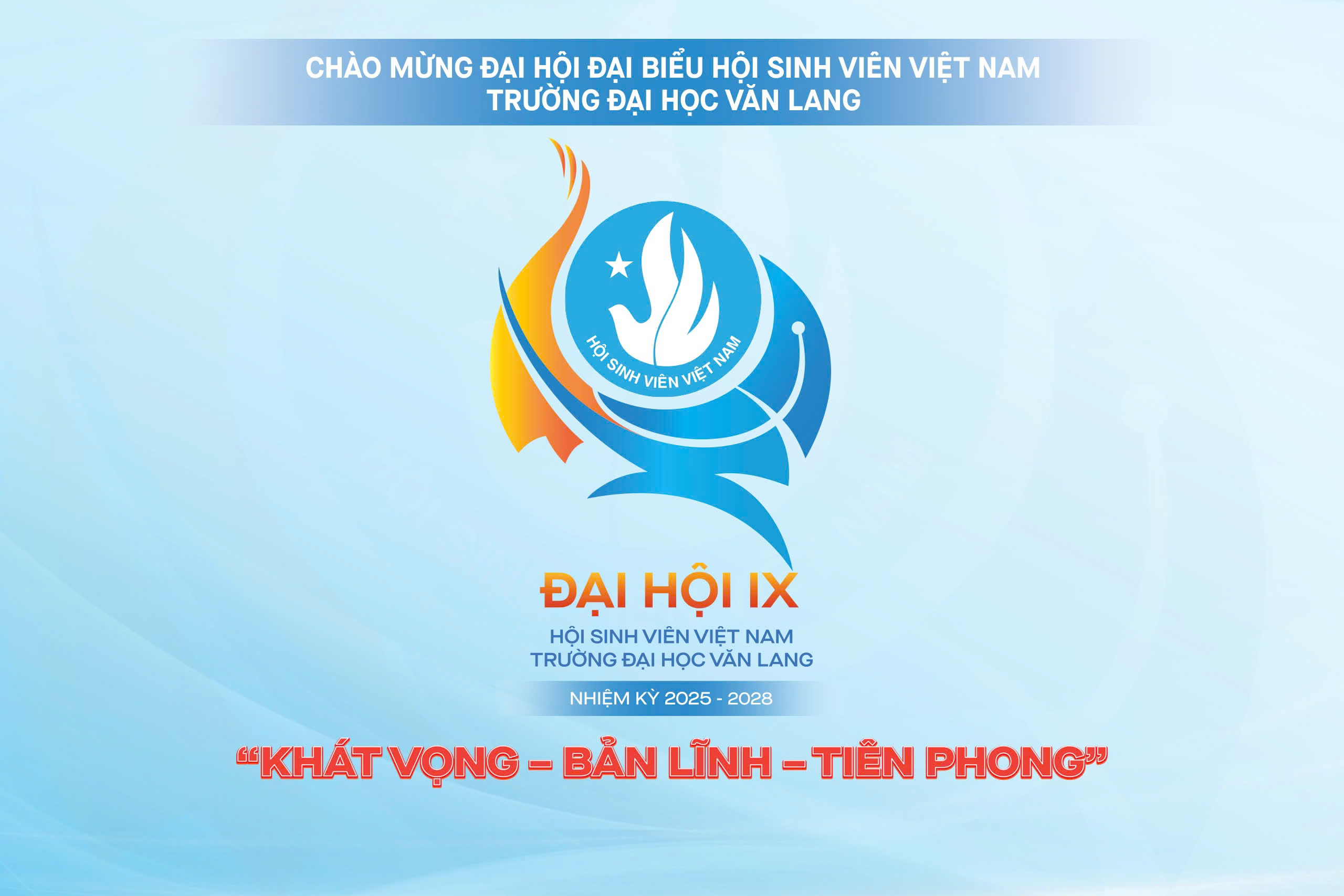 Trong không khí chào mừng Đại hội đại biểu Hội Sinh viên Việt Nam Trường Đại học Văn Lang lần thứ IX, nhiệm kỳ 2025 - 2028, Ban Chấp hành Hội Sinh viên Trường trân trọng công bố biểu trưng của Đại hội đại biểu Hội sinh viên Việt Nam Trường Đại học Văn Lang lần thứ IX.