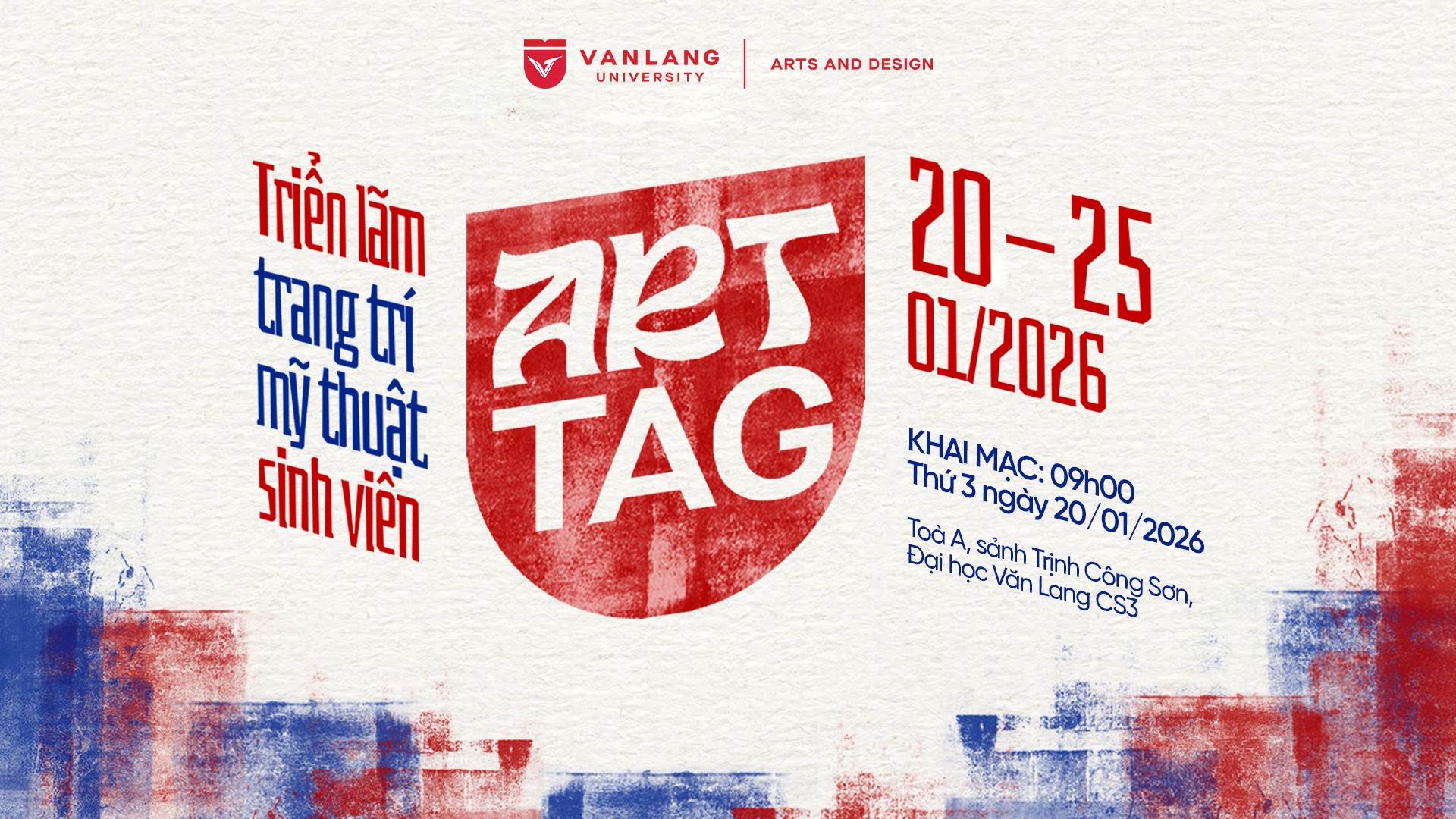 Tiếp nối những thành công từ các hoạt động giao lưu và triển lãm nghệ thuật, ngành Thiết kế Đồ hoạ – Khoa Arts & Design, Trường Đại học Văn Lang tổ chức Triển lãm Trưng bày Mỹ thuật Sinh viên “ART TAG”. Triển lãm là không gian giới thiệu những tác phẩm, đồ án tiêu biểu của sinh viên, phản ánh rõ nét tư duy sáng tạo, năng lực thẩm mỹ và khả năng giao tiếp thị giác trong quá trình học tập và rèn luyện chuyên môn.
