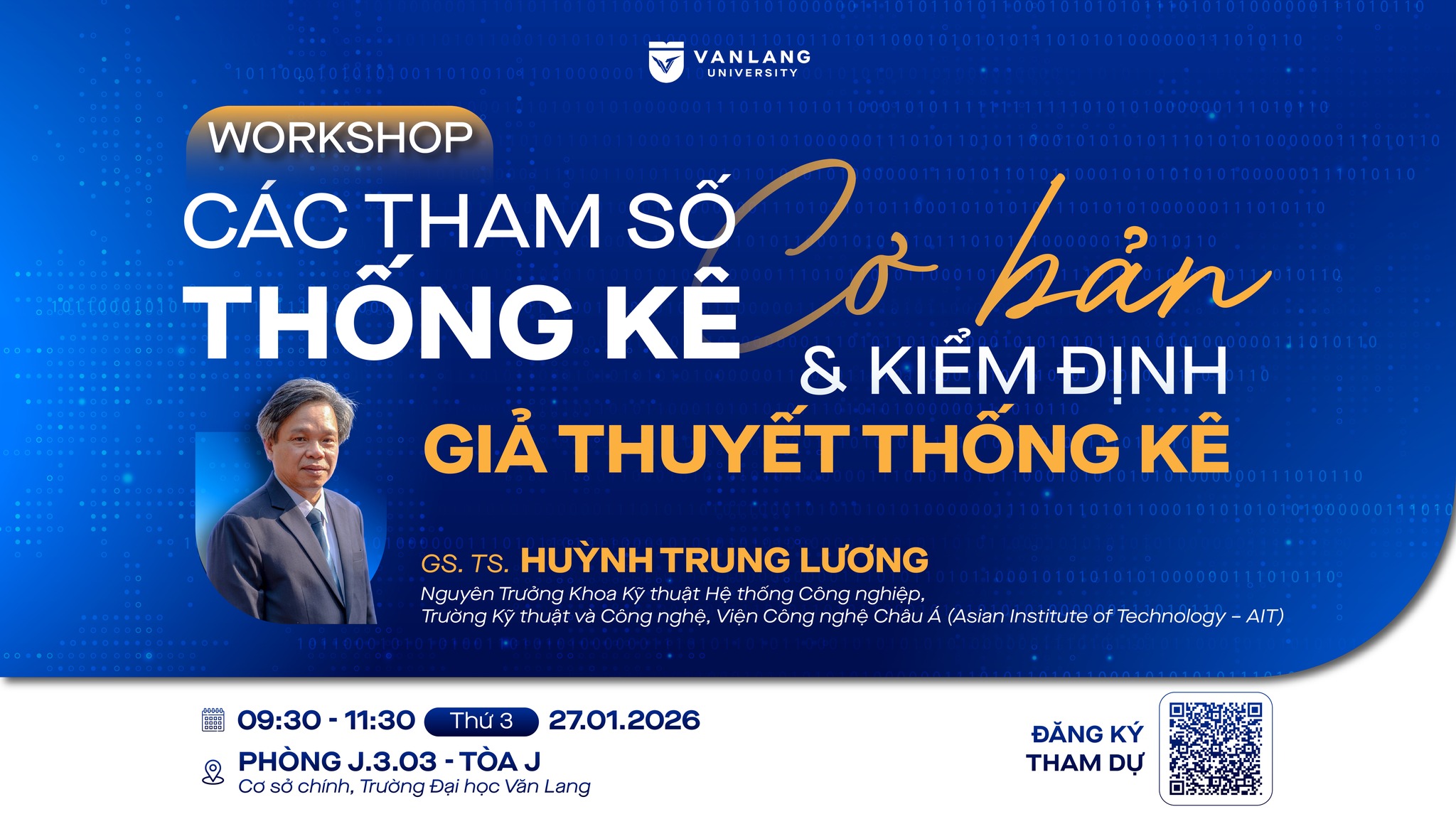 Nhằm tăng cường hoạt động học thuật, trao đổi chuyên môn và cập nhật kiến thức nền tảng trong lĩnh vực thống kê ứng dụng và phân tích dữ liệu, Trường Công nghệ Văn Lang trân trọng mời Quý Thầy Cô và các bạn sinh viên đăng ký tham dự Workshop với nội dung chuyên sâu và thiết thực.