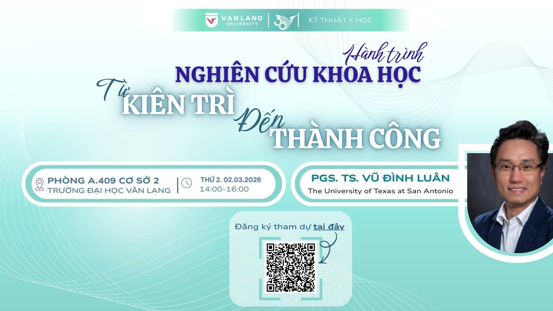 Trân trọng kính mời Quý Thầy Cô và các bạn sinh viên tham dự buổi chia sẻ thân mật cùng PGS.TS. Vũ Đình Luân (University of Texas at San Antonio, Hoa Kỳ).