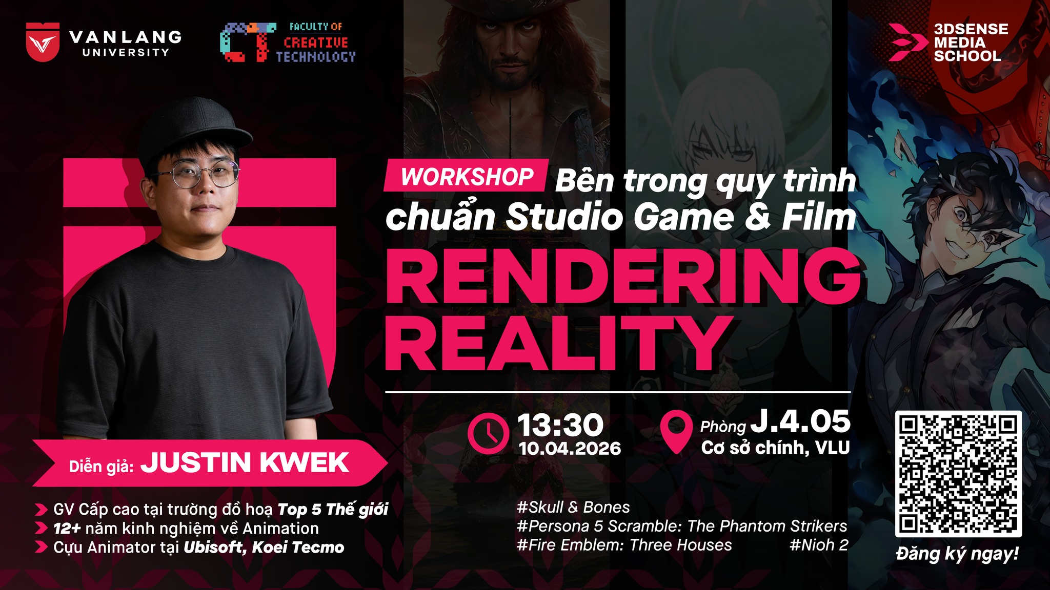 Tháng 4 này, Khoa Công nghệ Sáng tạo, Trường Đại học Văn Lang phối hợp cùng 3dsense Media School – Học viện nghệ thuật số thuộc Top 5 toàn cầu* – tổ chức buổi chia sẻ với chuyên đề “Rendering Reality: Bên trong quy trình chuẩn studio Game & Film”. Qua đây, bạn có thể: